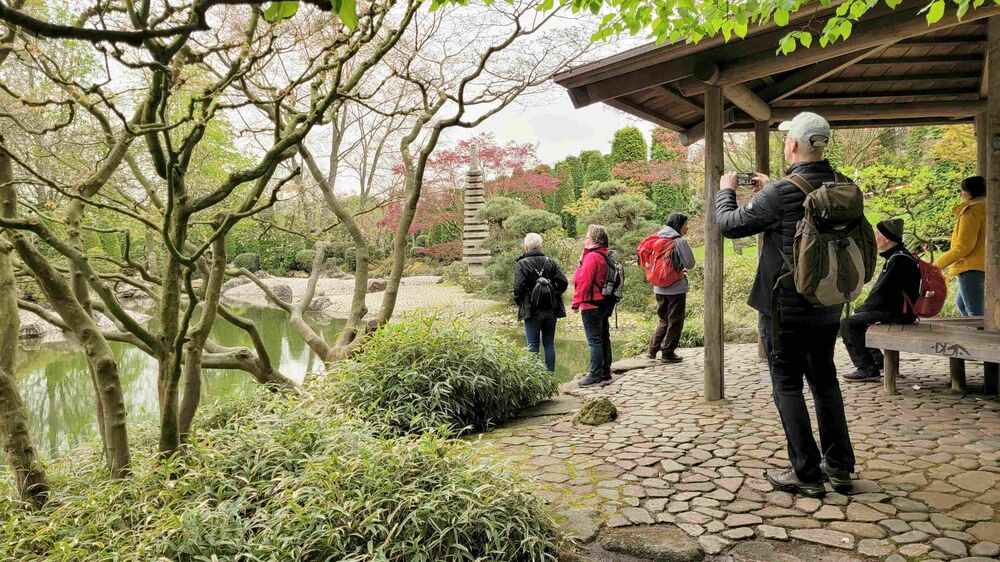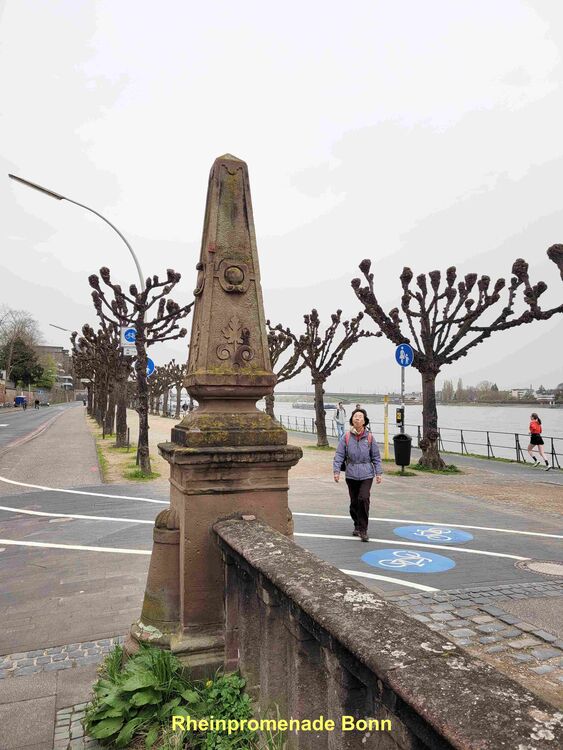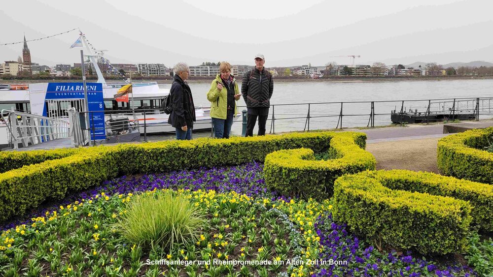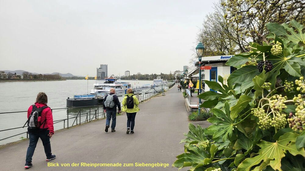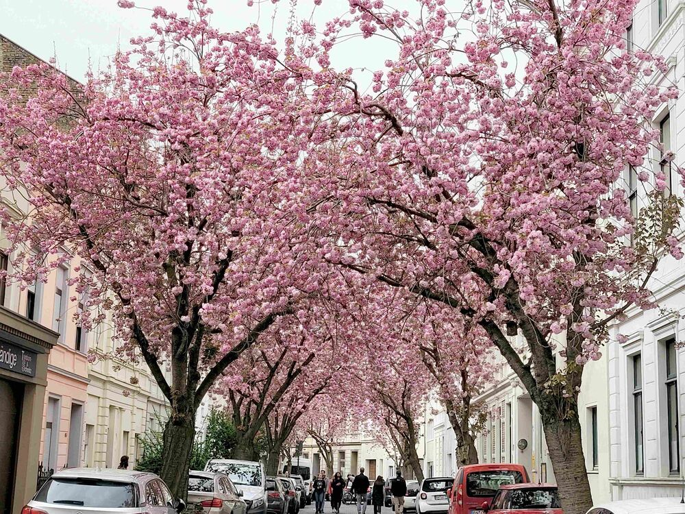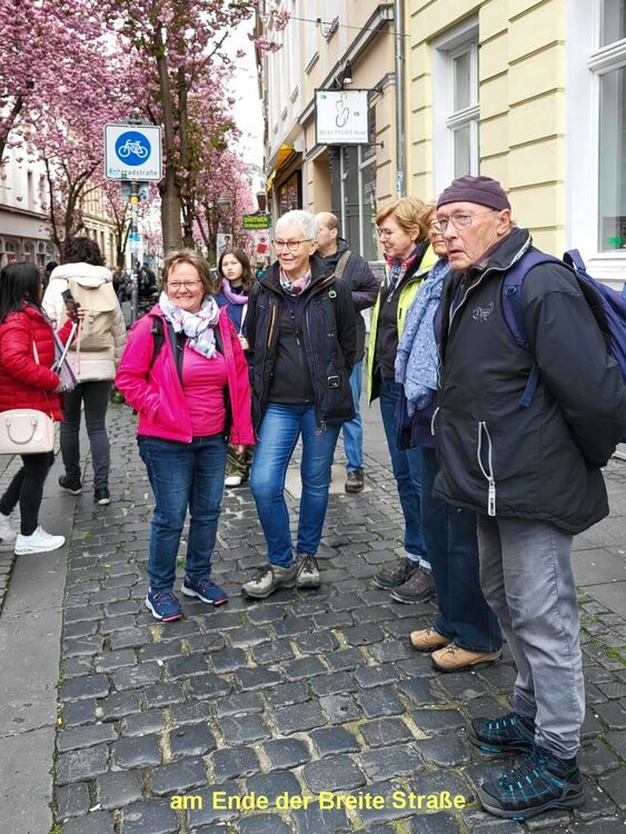 Der Frühling in Bonn grüßte unsere Wandergruppe (9) mit rosaroten Kirschblüten in der Heer- und Breite-Straße. Die teils uralten Kirschbäume waren frühzeitig erblüht und so konnten wir die Farben voll genießen, bevor der große Ansturm am Mittag begann. Wir hatten Zeit, schon zu morgendlichen Stunde ein Eiscafe aufzusuchen. Dann ging es weiter durch die Innenstadt, am Beethoven-Haus vorbei und über die Rheinpromenade in den Freizeitpark Rheinaue. Hier Besuch des Japanischen Garten. Am Post-Tower unterbrachen wir die Wanderung und fuhren mit dem Bus zum Hbf. zurück. Von hier aus wanderten wir über die Prachtstraße Poppelsdorfer Allee zum Schloss und zur Schlusseinkehr in Restaurant Gesindehaus.