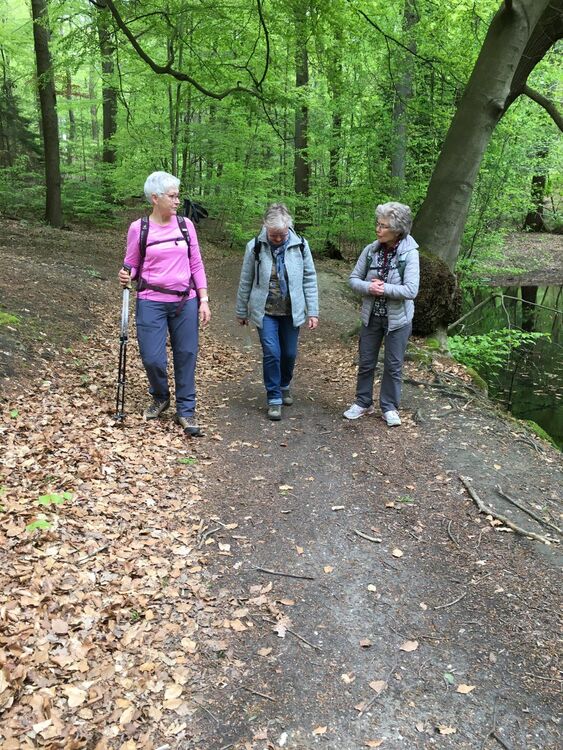 11 Wanderer waren waren mit Wanderführerin Gisela Herbst unterwegs im NSG Myhler Bruch. Zu bestaunen gab es eine Vielfalt von Tümpeln und Teichen, mit blühenden Sumpf-