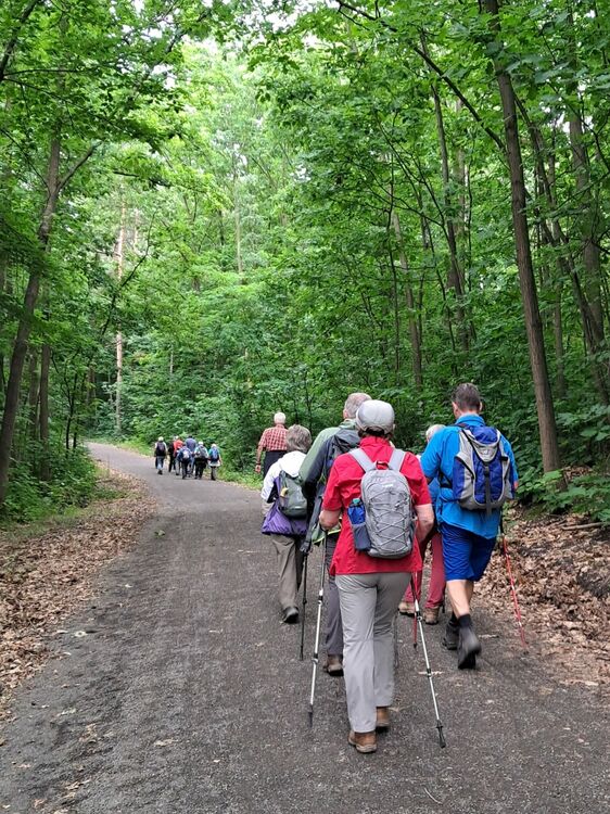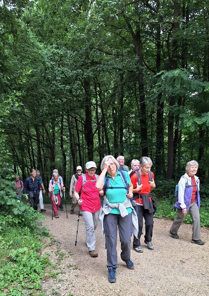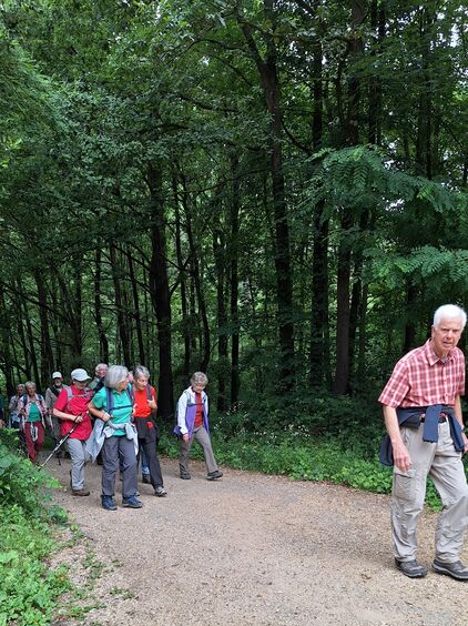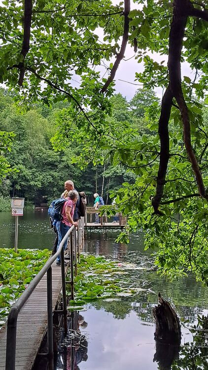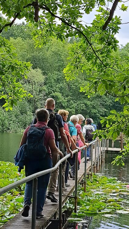 26 gut gelaunte Wanderer starteten am Heider Bergsee zu einer 11 km-Wanderung durch die Ville. Die Route führte oberhalb des Schluchtsees zum Untersee mit seinen gelb blühenden von uns bewunderten Teichrosen-Teppichen, auch Mummeln genannt. Sie stehen unter Naturschutz und zählen zur Familie der Seerosengewächse. Unser nächstes Ziel waren dann die Seerosen im Villenhofer Maar, wunderschön pink und weiß blühend. Auch der Pingsdorfer See zeigte seine Seerosenfelder. Von dort ging es zurück zum Heider Bergsee und zufrieden dann zur Einkehr im „Alt Liblar“.