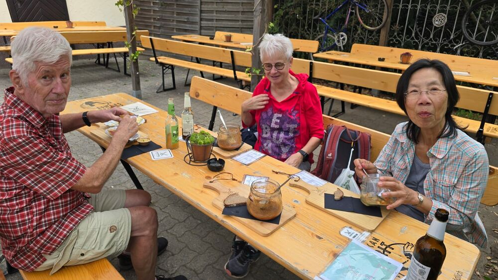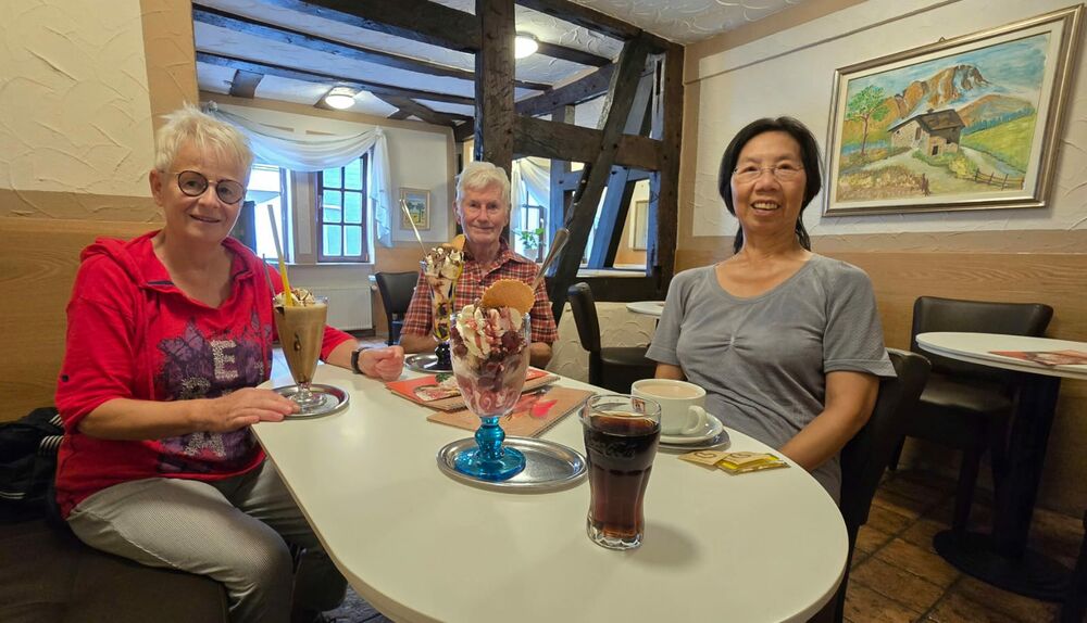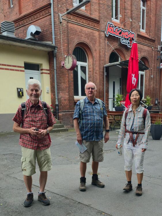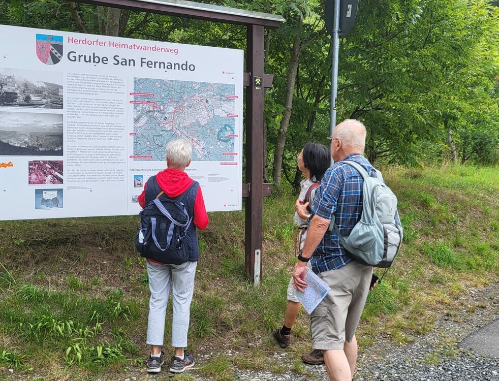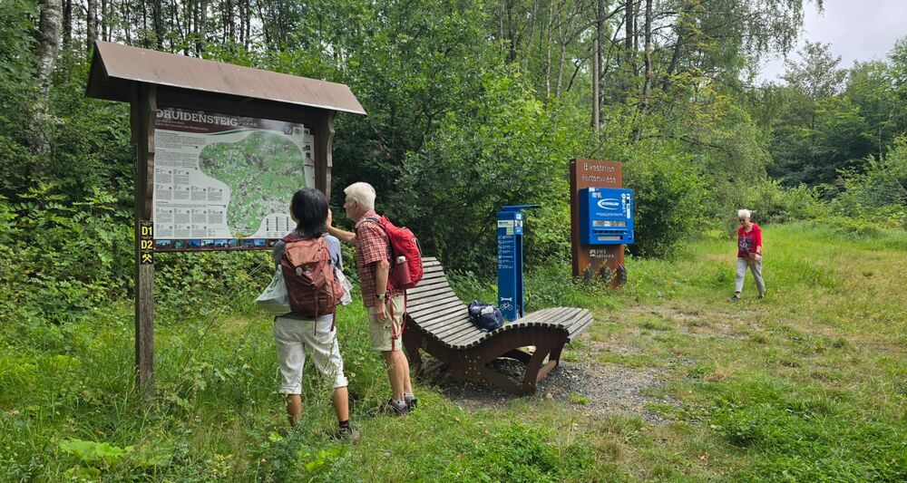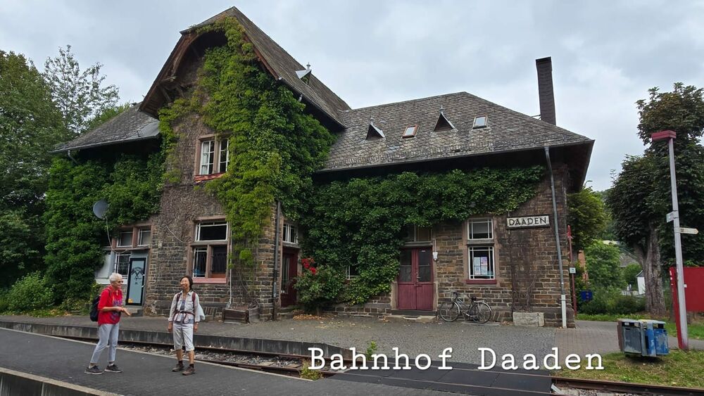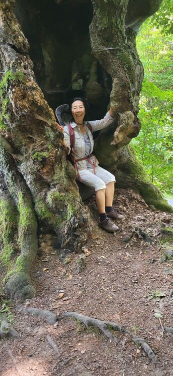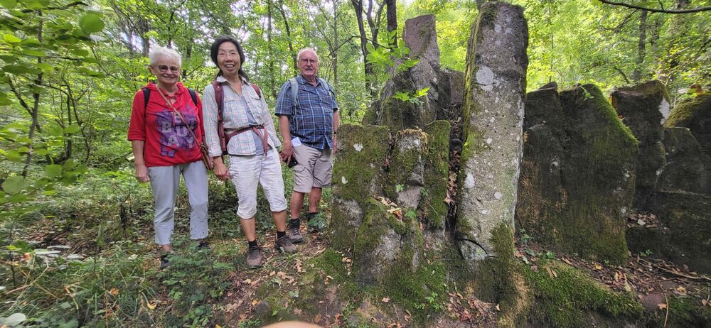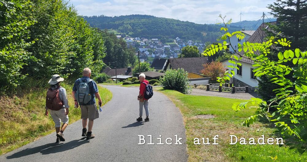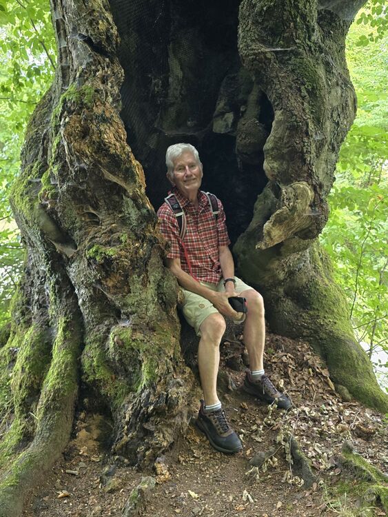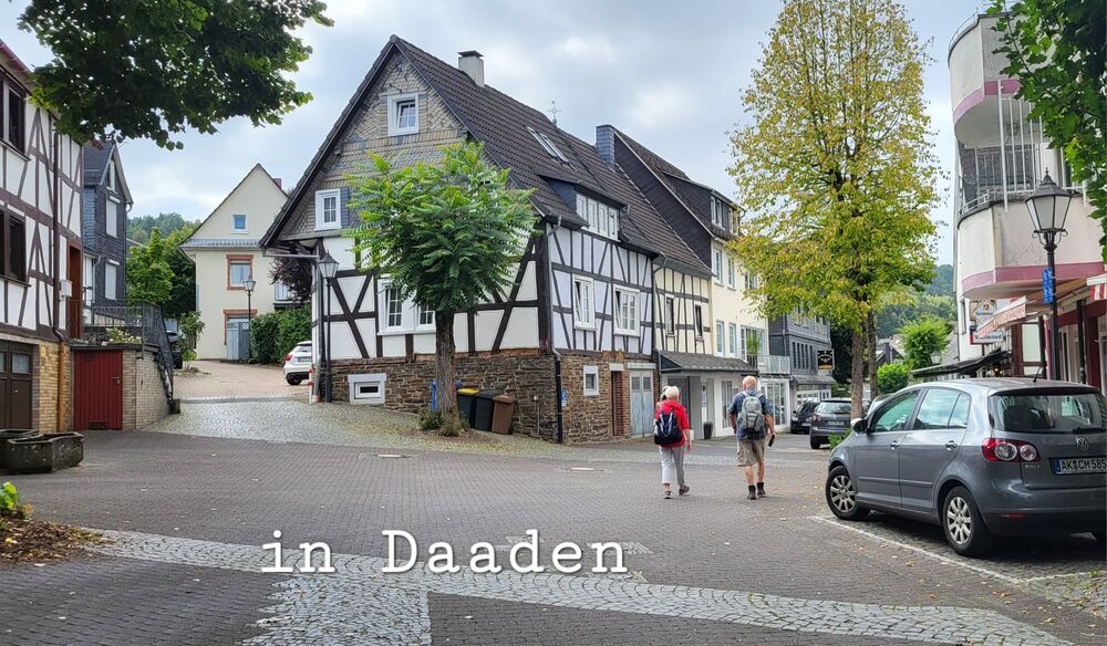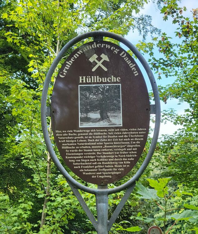 Gestärkt abwärts über den Grubenwanderweg an der uralten Hüllbuche vorbei nach Daaden mit Schlusseinkehr im Eiscafe Dolomiti. Bei gemütlichem Tempo hatten wir eine 16 km lange schöne Wanderstrecke auf dem Tacho!