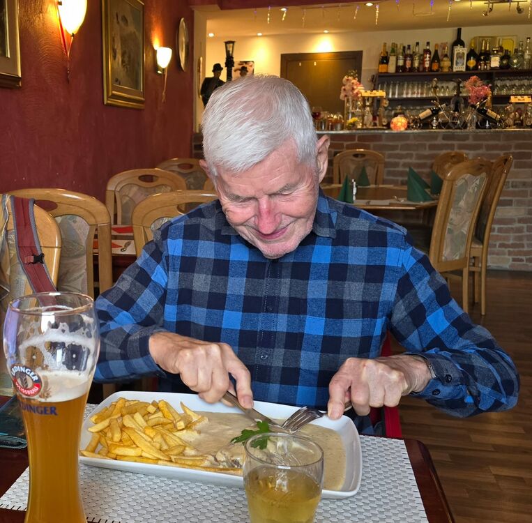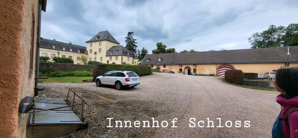 unsere Mittagspause machten. Auf dem Weg zum Bahnhof noch an der Kirche, der uralten Dorflinde und dem Schmidtheimer Schloss vorbei.