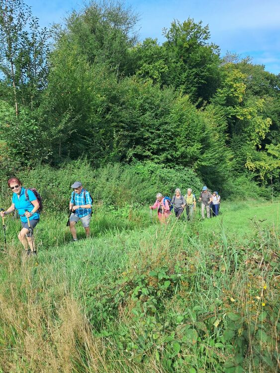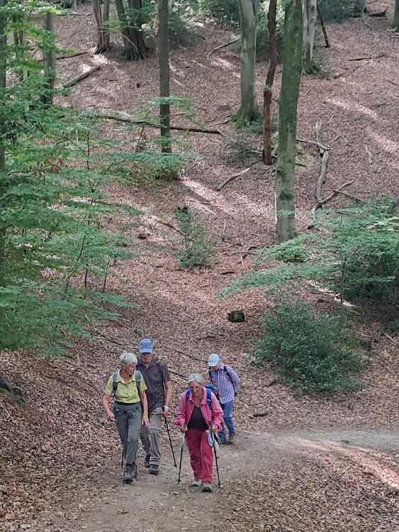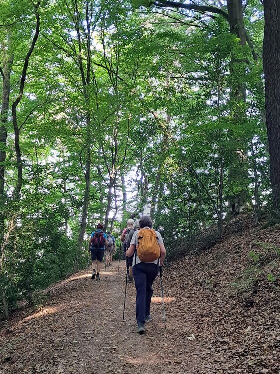 Ab Bahnhof Overath starteten wir 11 Wanderer, meist auf schattigen Wegen, entlang der Agger, auf dem Overather Pilgerweg hinauf nach Marialinden. Hier hatten wir die Hälfte unserer 11 km langen Strecke erreicht. Ein schöner Rastplatz unter Linden war ideal für eine längere Pause. Von dort ging es hinab ins Lombachtal bis zur Agger. Ein naturbelassener Pfad führte uns zu unserem Ausgangspunkt.