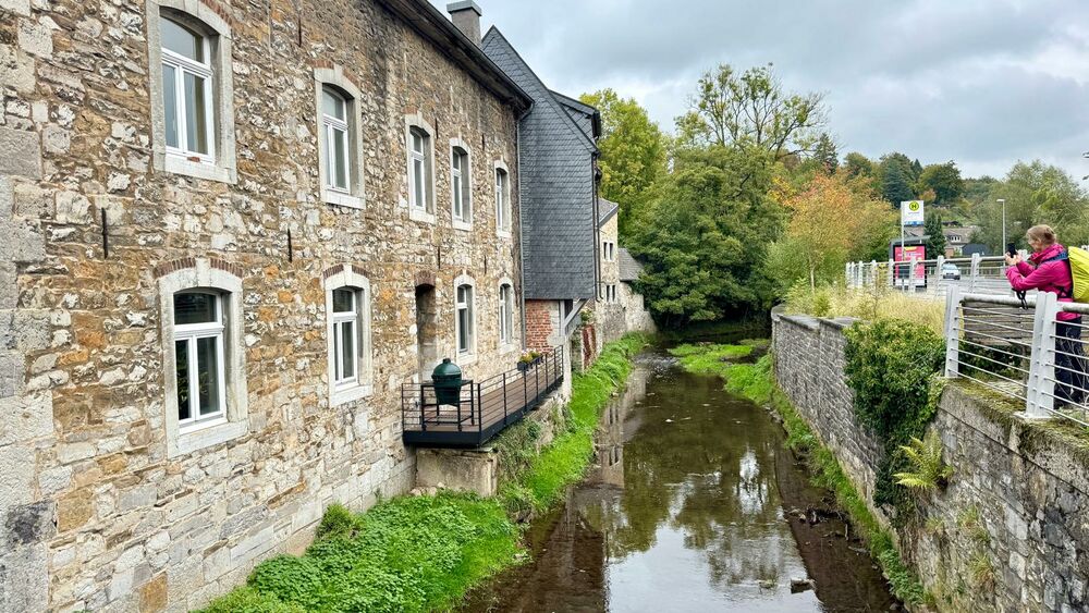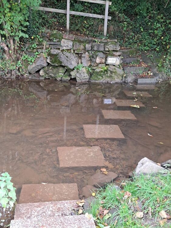 Erst ein Stück über den Eifelsteig entlang der Inde, bis wir dann nach kurzer Zeit an der ersten Bachquerung - ohne Brücke- über die Inde gehen, zum Glück hatte die Inde hier nicht so viel Wasser.