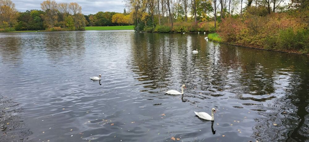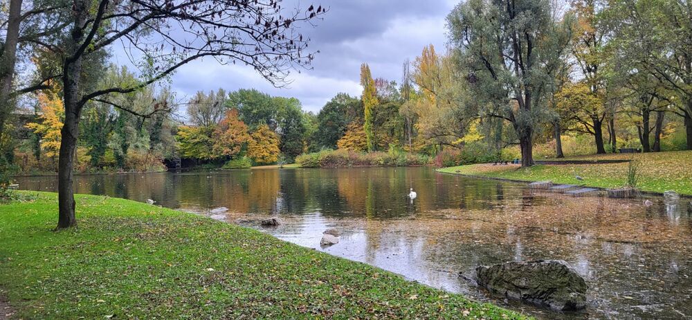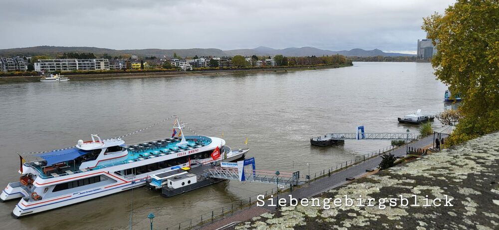 Hier grauer Blick zum Siebengebirge und weiter auf der Promenade am Rhein entlang zur Rheinaue mit Mittagspause.