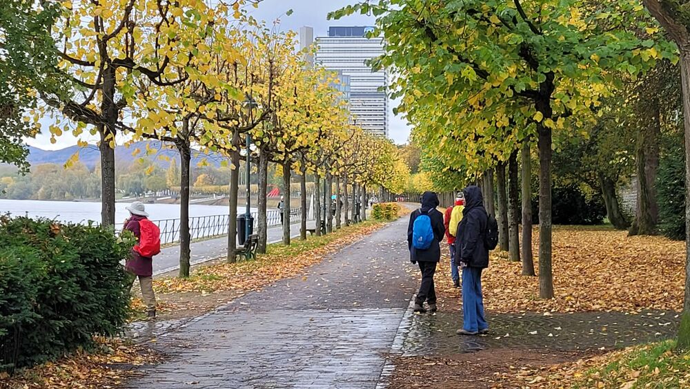 Die unsichere Wetterlage veranlasse uns Fünf, spontan das Waldgebiet auf dem Ennert nicht zu betreten. Also in Bonn raus aus dem Zug, durch die Innenstadt, Besuch des Bonner Münster, an der Uni vorbei zum Ausblick Alter Zoll.