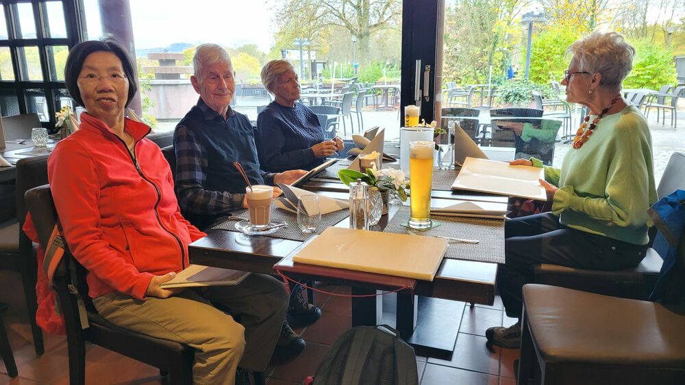 Rechtzeitig zur Einkehr in der Pagode angekommen, um die einsetzenden Regenschauer trocken am Kaminfeuer zu überbrücken. Weil wir noch genug Zeit hatten, mit der U66 nach Siegburg und zum Tagesabschluss in ein Eiscafe am Bahnhof.