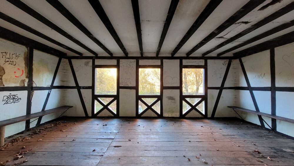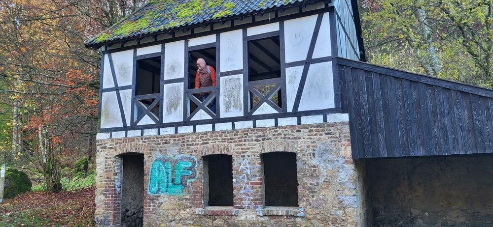 Ab Bahnhof Urft waren wir wieder unter uns und machten an Burg Dalbenden und dem Römerkanal-Aufschluss Pause.