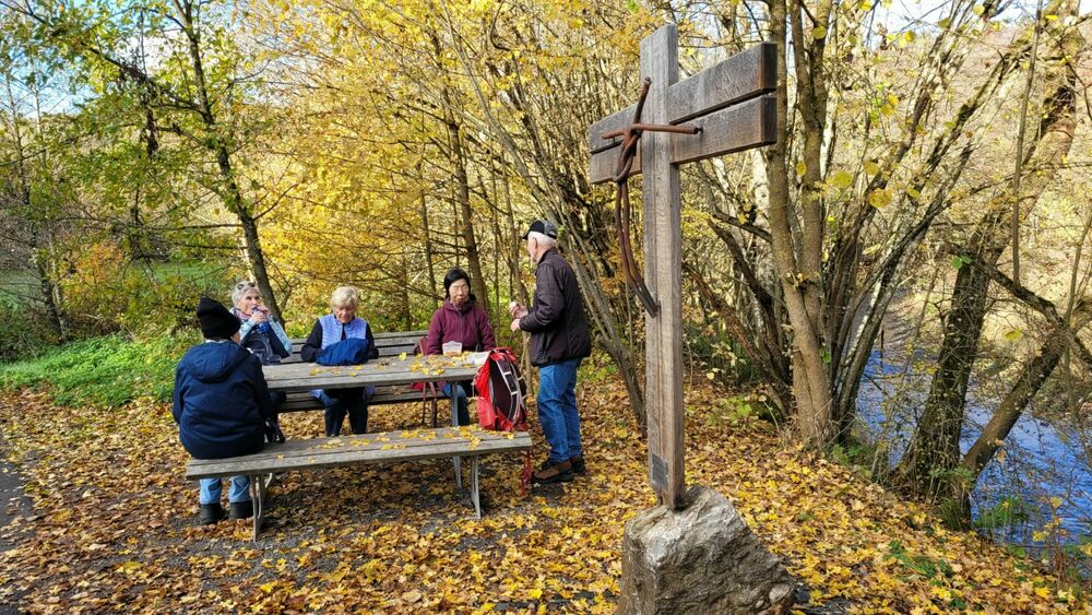Strahlender Sonnenschein erwartete uns 6 in Kall beim Umstieg in den Bus nach Nettersheim. Wir starte über den  Römer-Kanal-Wanderweg zur Quellfassung  "Grünen Pütz"  im Urfttal. Hier beginnt der Römerkanal, der Sickerwasser auffing und über 100 km langen Leitung nach Köln weiterführte. Bei Urft konnten wir den neu eingerichteten Zauberwald-Wanderweg begehen. Ein Erlebnis für die ganze Familie! Die Kinder sollen an 10 Stationen das Selbstvertrauen der Waldwesen zurückholen und stärken und mit Aktionen unterwegs unterstützen.
