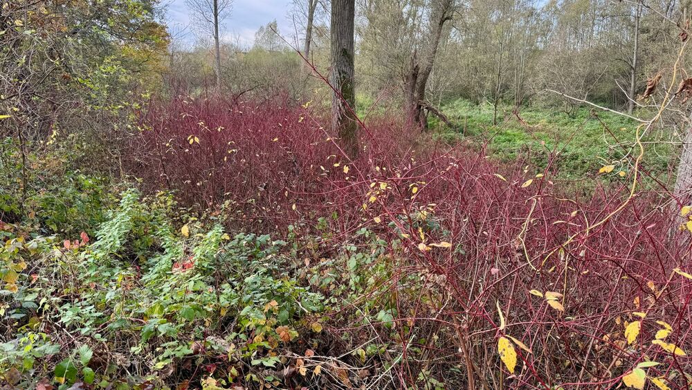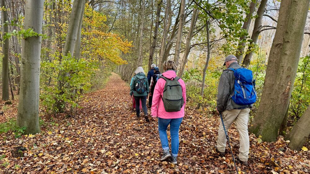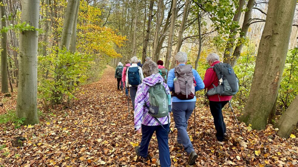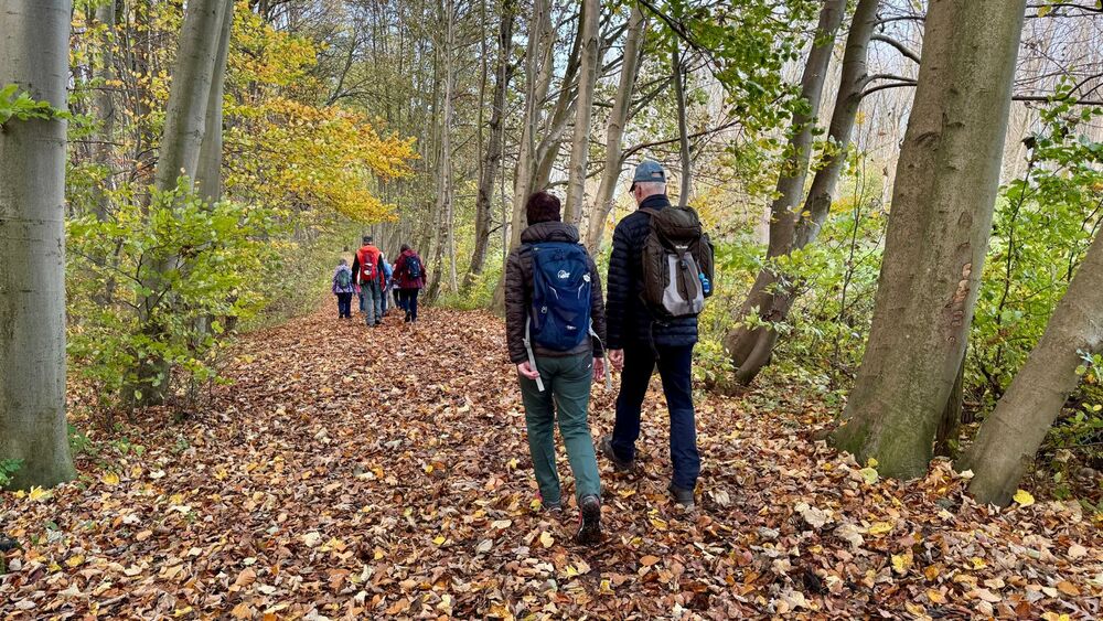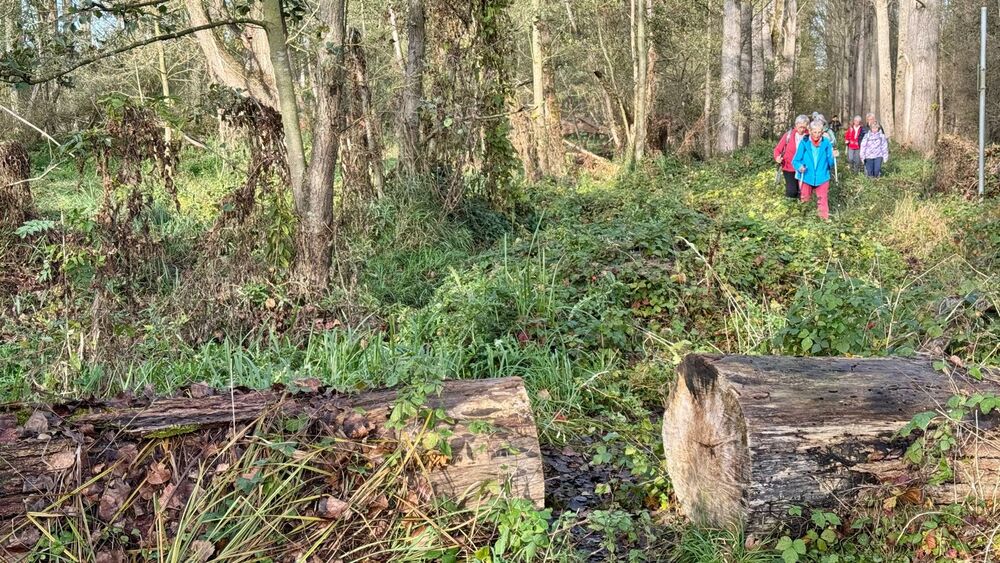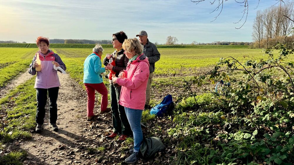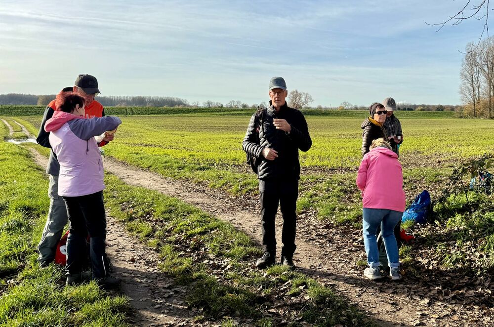 16 Wanderlustige zogen heute vom Worringer Bahnhof los, um mal wieder den Worringer Bruch zu erwandern. Die Bäume haben schon ziemlich viel Laub verloren aber mit der Sonne wurden die restlichen Blätter doch noch herbstlich bunt angestrahlt. Über Wald- und Wiesenpfade, schmal und auch breit durch den Bruch, bis wir am Rhein ankamen, leider waren die erhofften Glanrinder nicht mehr da, sind sicher schon im Stall, es gab nur noch einen Hinweis das sie da sind, im Frühling hoffentlich wieder gesund und munter zurück.