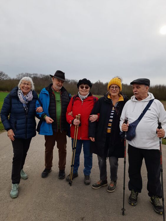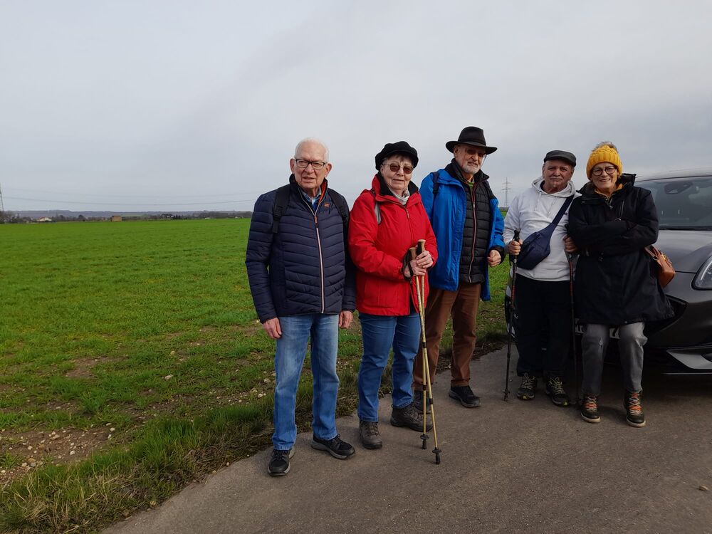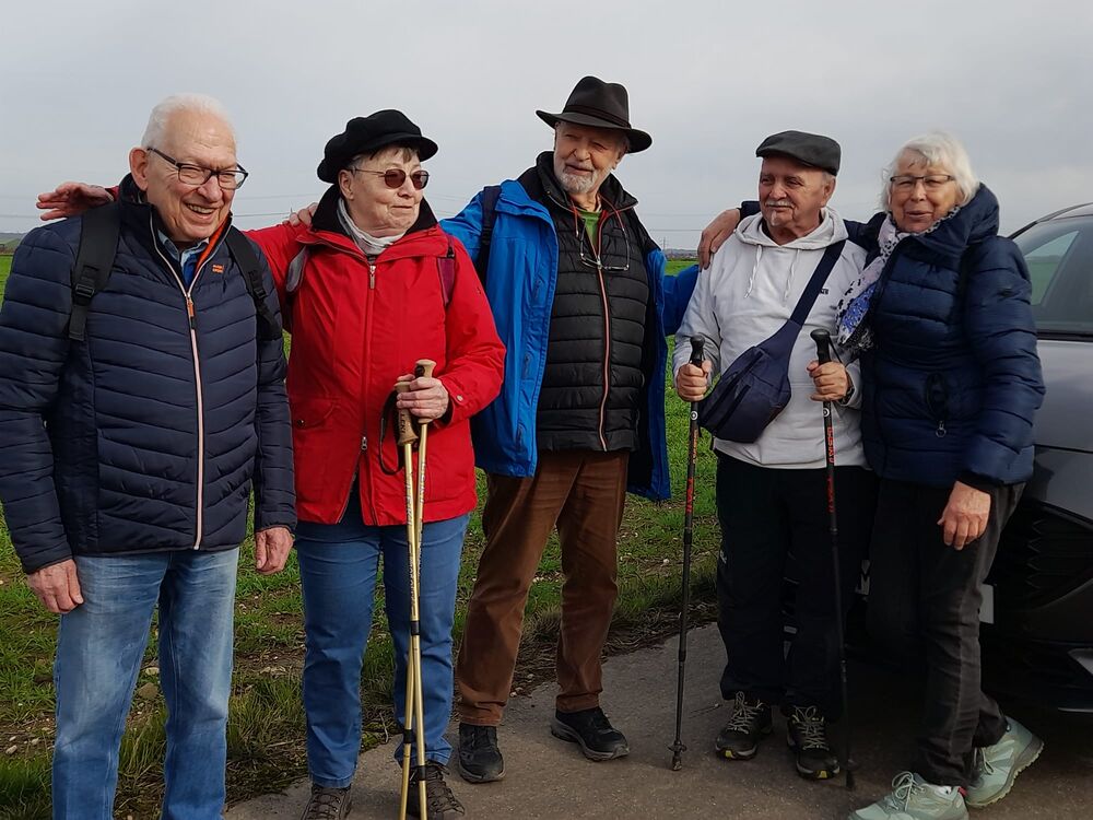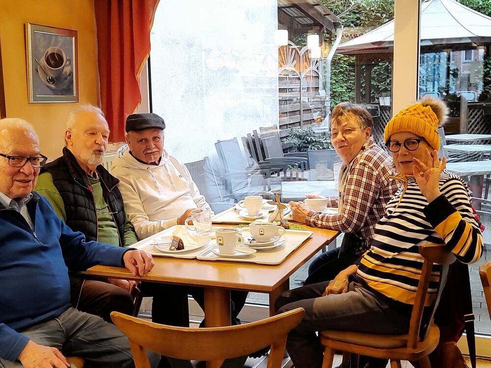 5 Senioren haben heute mit Wanderführerin Elvira Scholz die Steinheide umrundet. Anschließend war die Einkehr im Café Schneider in Berrendorf.