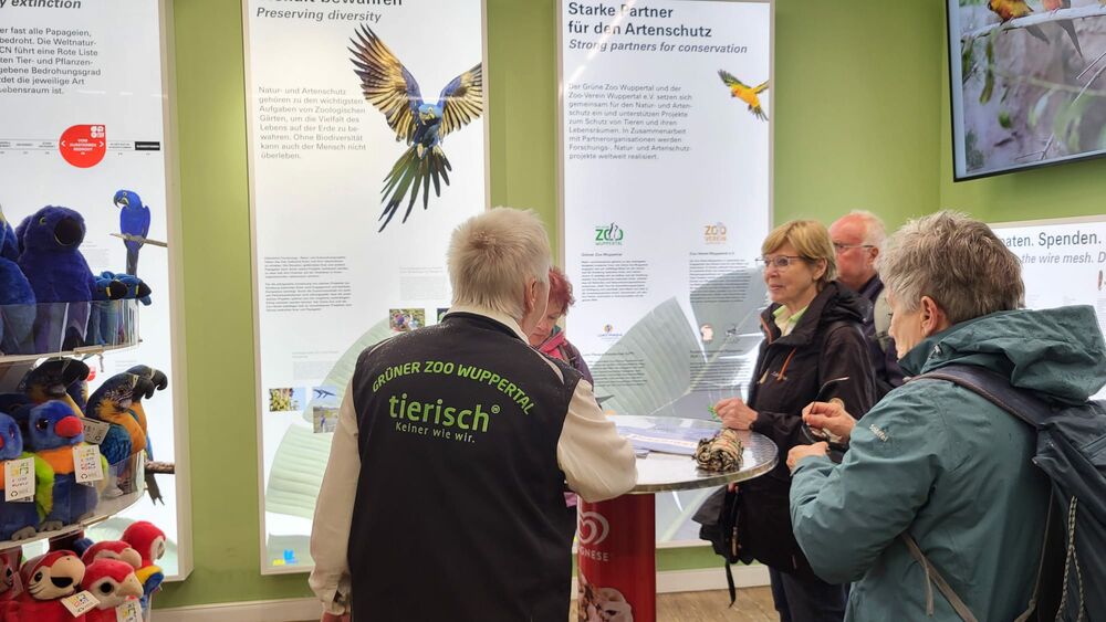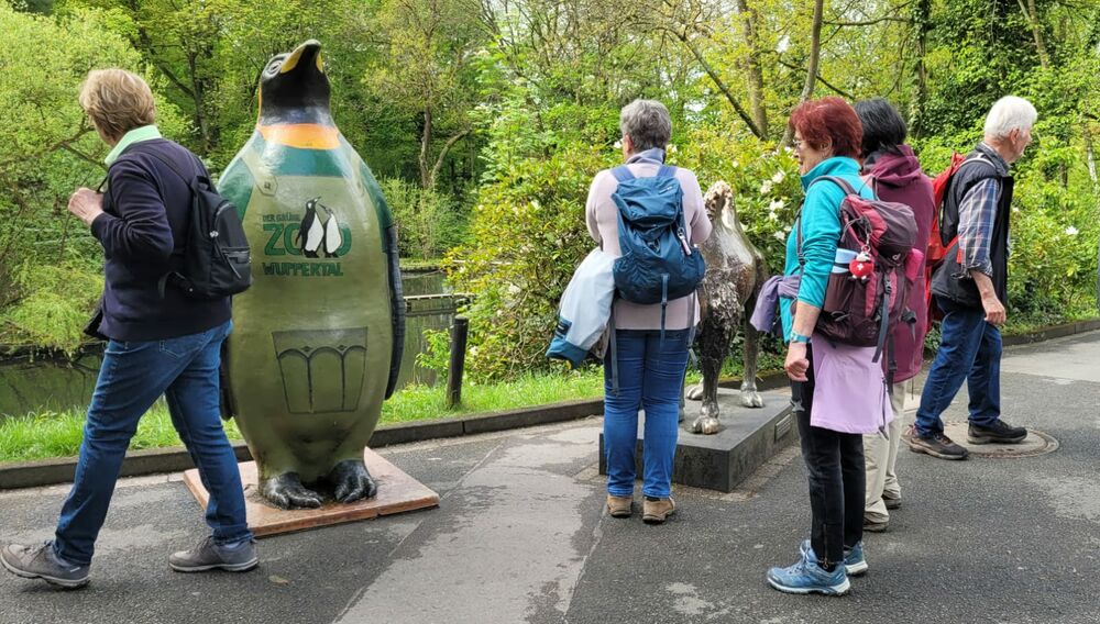 Die Anfahrt klappte gut und wir waren pünktlich kurz nach 10 Uhr ab Schwebebahnstation Wuppertal-Pestalozzistraße auf dem Weg nach oben auf die Kaiserhöhe zum "Von-der-Heydt Turm". Hier nach der ersten Pause weiter durch den herrlich Bergwald zum "Grünen Zoo Wuppertal". Unsere liebe Helga hatte schon vorab eine Führung gebucht. Nach kurzem Imbiss in Zoorestaurant OKAVANGO erwartete uns Frau Elke Frede-Flender, die uns sachkundig durch den weitläufigen Park führte. Wie die Bilder zeigen, wohnen hier die Tiere vielfach in großen Freigehegen und es wird großen Wert auf die Nachzucht der bedrohten Kreaturen gelegt, die später wieder in den Urspruchtsländern ausgewildert werden.