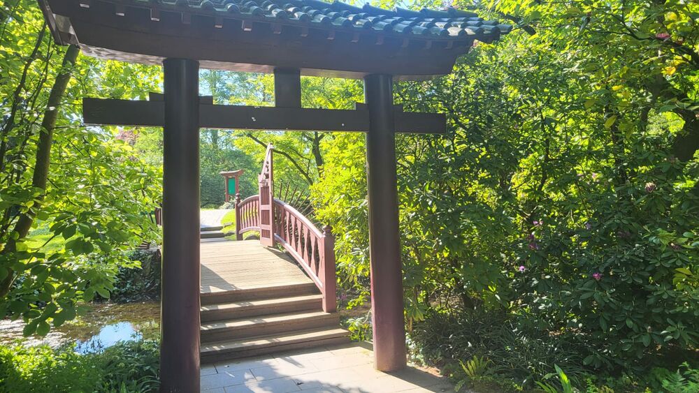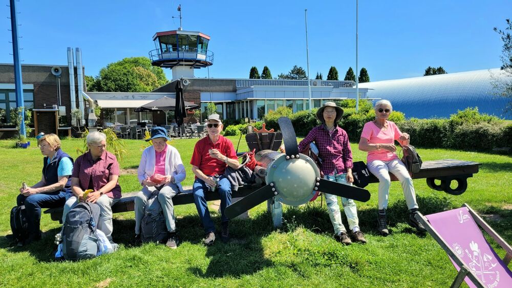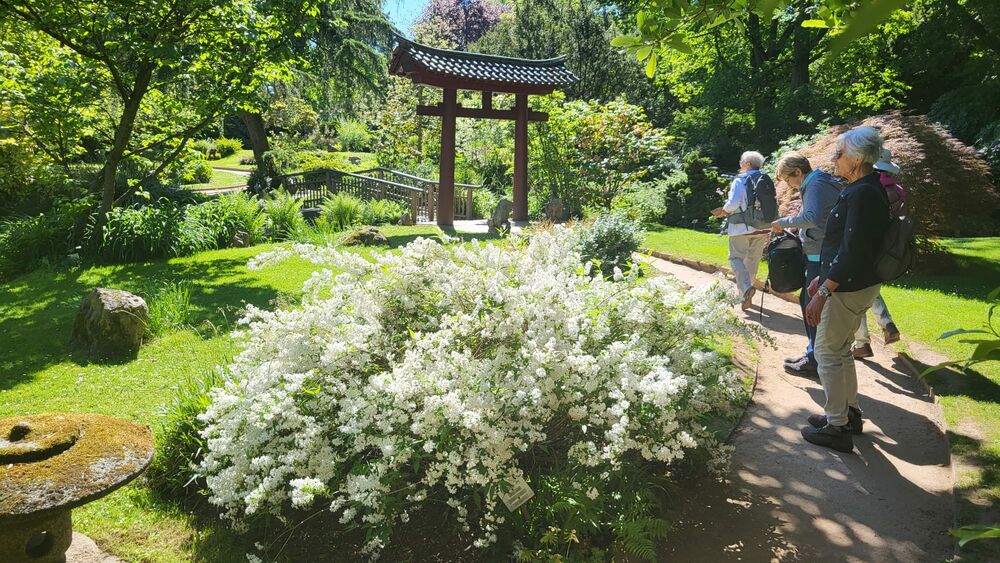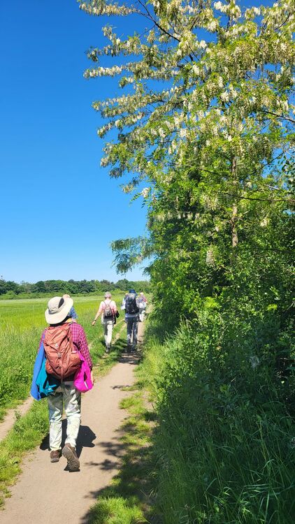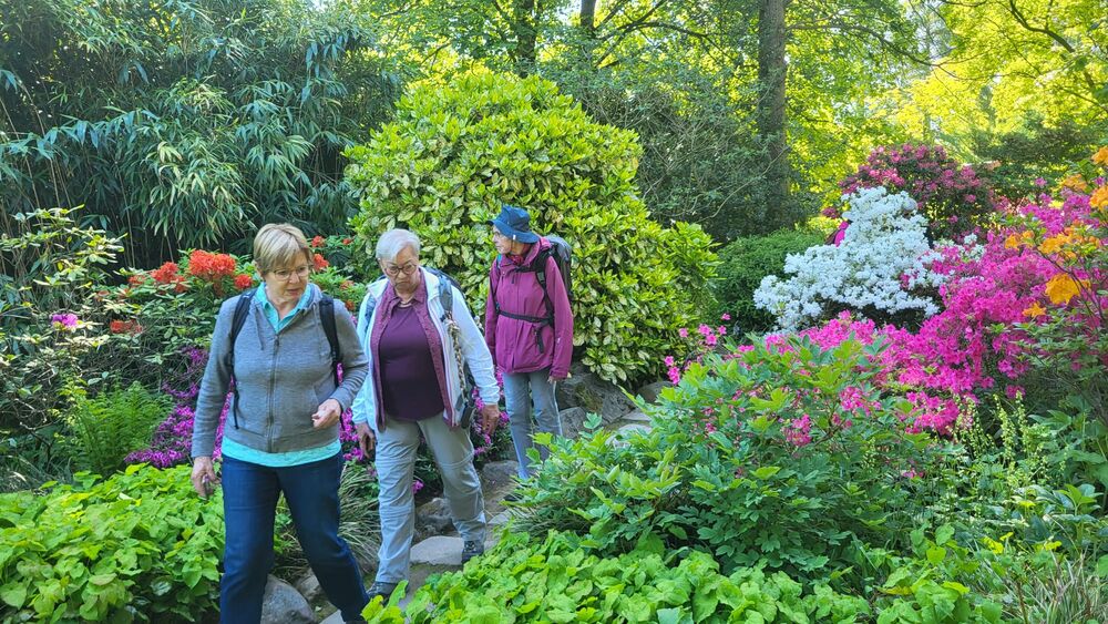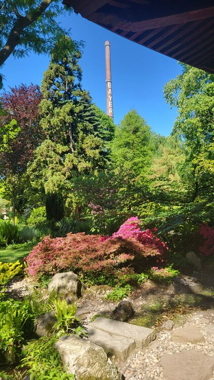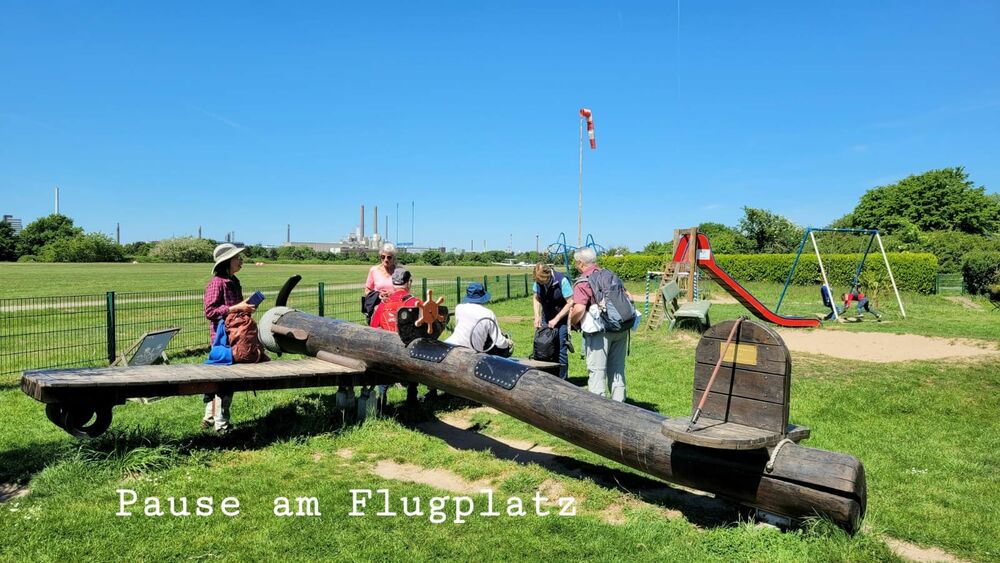 Ab Bahnhof Leverkusen-Chempark wanderten wir Sieben zunächst durch den Carl Duisberg-Park. Am Ende befindet sich der Japanische Garten, wo Azaleen, Rhododendren und viele andere Büsche und Pflanzen in voller Blüte zu bewundern sind. Wieder zurück zum Bahnhof war das nächste Ziel der Flughafen von Bayer. Das schöne Wetter war ideal für den Start von Segel- und Motorfliegern. Die Pause auf dem Kinderspielplatz benutzten wir, um gleich anschließend im Restaurant Flieger-Hütte im Biergarten gut zu speisen. Gestärkt weiter in Richtung Schlebusch durch das Naturschutzgebiet am Hornpottweg zum Straßenbahn-Endhaltepunkt und problemloser Rückfahrt nach Köln-Weiden.