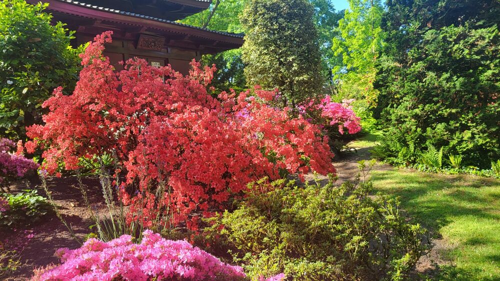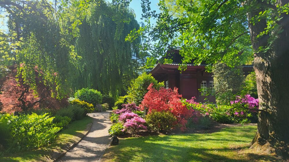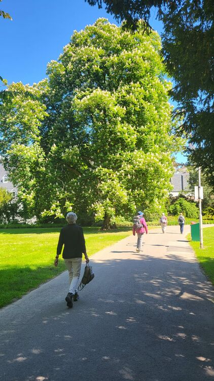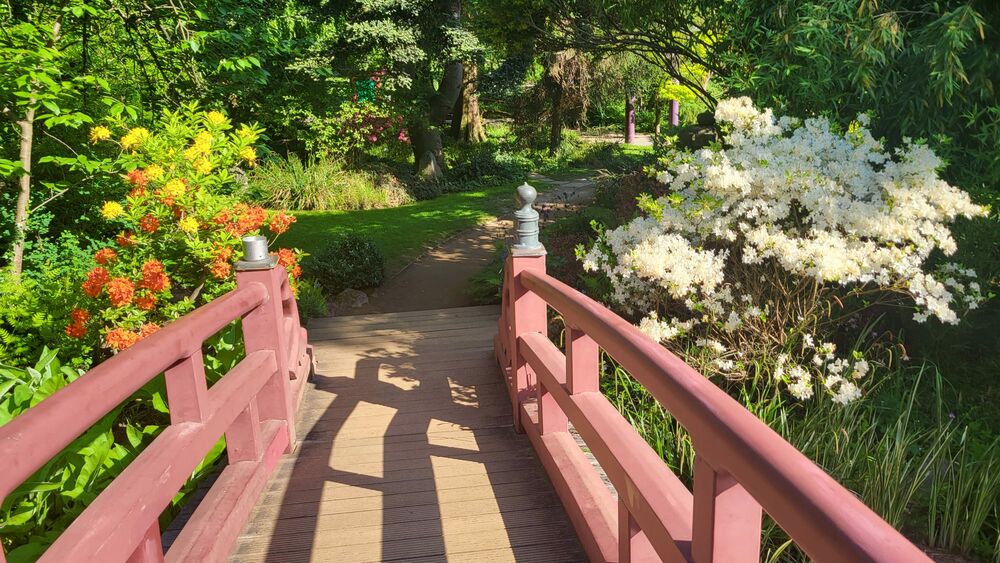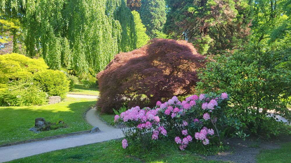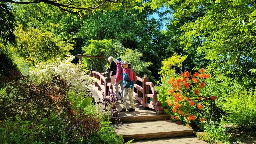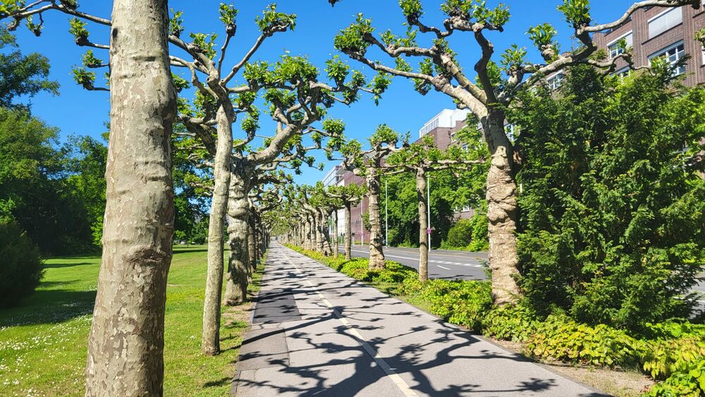 Ab Bahnhof Leverkusen-Chempark wanderten wir Sieben zunächst durch den Carl Duisberg-Park. Am Ende befindet sich der Japanische Garten, wo Azaleen, Rhododendren und viele andere Büsche und Pflanzen in voller Blüte zu bewundern sind. Wieder zurück zum Bahnhof war das nächste Ziel der Flughafen von Bayer. Das schöne Wetter war ideal für den Start von Segel- und Motorfliegern. Die Pause auf dem Kinderspielplatz benutzten wir, um gleich anschließend im Restaurant Flieger-Hütte im Biergarten gut zu speisen. Gestärkt weiter in Richtung Schlebusch durch das Naturschutzgebiet am Hornpottweg zum Straßenbahn-Endhaltepunkt und problemloser Rückfahrt nach Köln-Weiden.