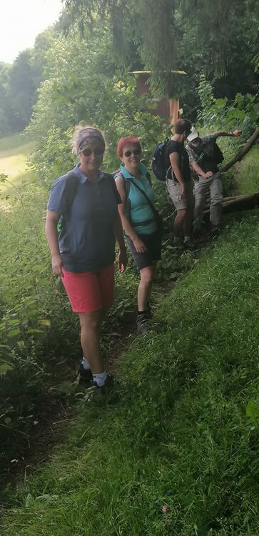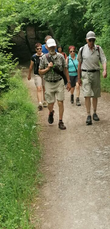 Acht Wanderfreunde ließen sich von höheren Temperaturen nicht aufhalten und starteten am Bahnhof in Blens. Bald war der schattige Weg ins Odenbachhtal erreicht. Der Aufstieg bis kurz vor Schmidt war dennoch schweißtreibend. Wir folgen dem Weg Nummer 30 hinauf zur Hubertushöhe, genießen die Ruhe und den Ausblick auf den See. Von nun an geht es, teils steil, hinab zum See. Hinter der Staumauer finden wir wieder einen schmalen Pfad. Im alten Kraftwerk erklingt recht schräge Musik! Wir fliehen auf den Uferweg nach Heimbach. Im Café gibt es die nötige Pause, bevor wir pünktlich den Zug erreichen.