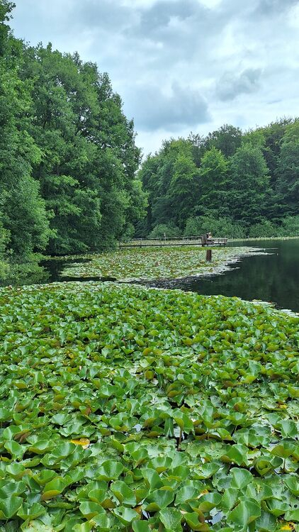 26 gut gelaunte Wanderer starteten am Heider Bergsee zu einer 11 km-Wanderung durch die Ville. Die Route führte oberhalb des Schluchtsees zum Untersee mit seinen gelb blühenden von uns bewunderten Teichrosen-Teppichen, auch Mummeln genannt. Sie stehen unter Naturschutz und zählen zur Familie der Seerosengewächse. Unser nächstes Ziel waren dann die Seerosen im Villenhofer Maar, wunderschön pink und weiß blühend. Auch der Pingsdorfer See zeigte seine Seerosenfelder. Von dort ging es zurück zum Heider Bergsee und zufrieden dann zur Einkehr im „Alt Liblar“.
