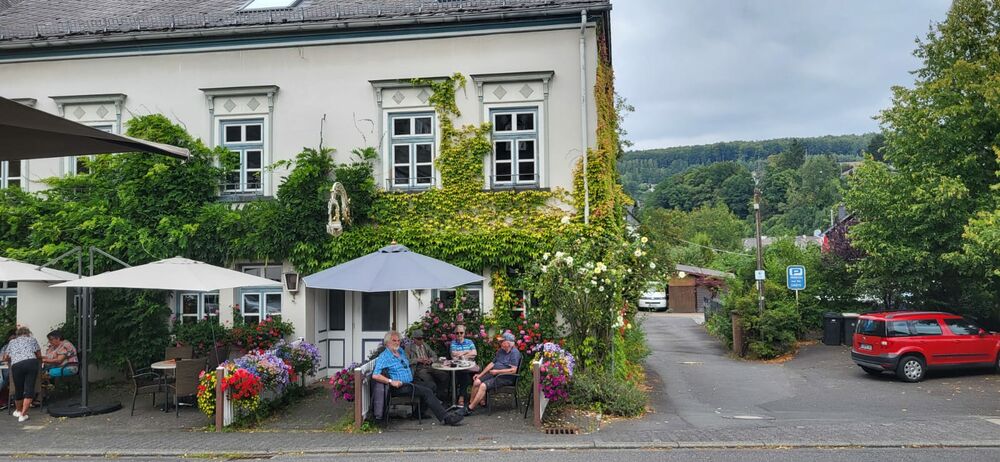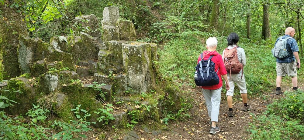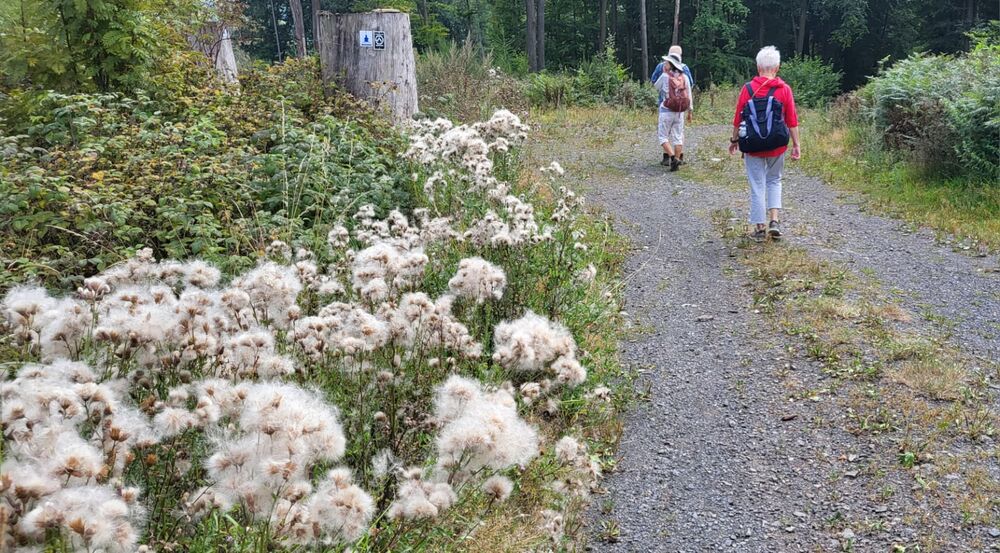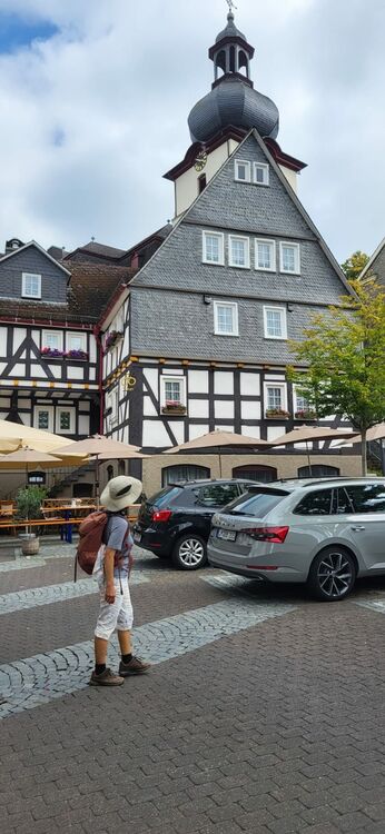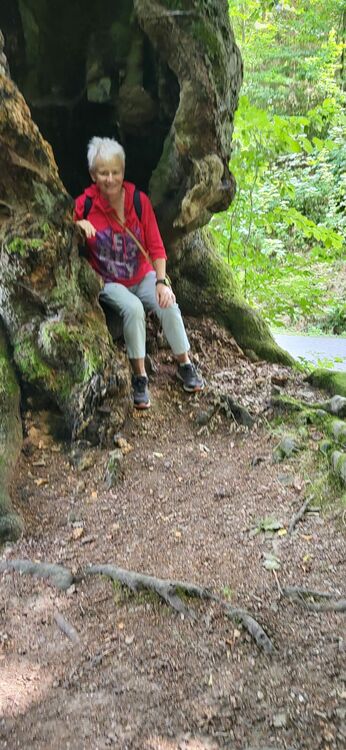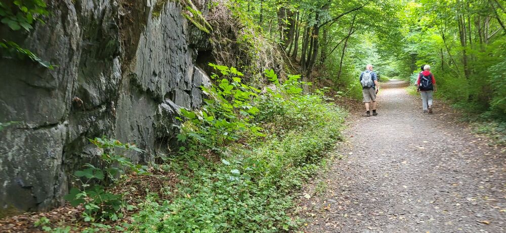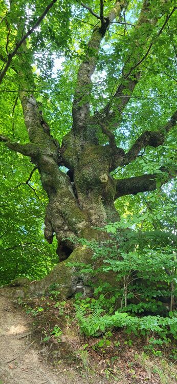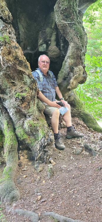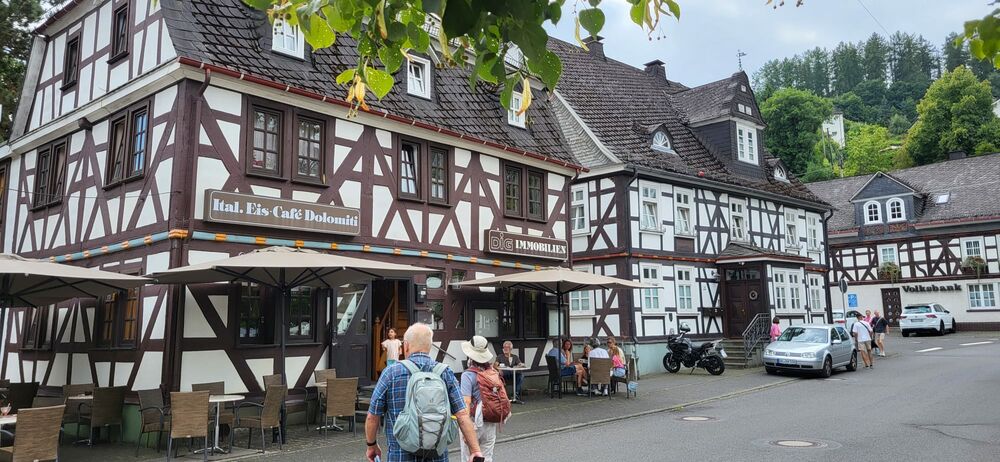 Gestärkt abwärts über den Grubenwanderweg an der uralten Hüllbuche vorbei nach Daaden mit Schlusseinkehr im Eiscafe Dolomiti. Bei gemütlichem Tempo hatten wir eine 16 km lange schöne Wanderstrecke auf dem Tacho!
