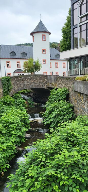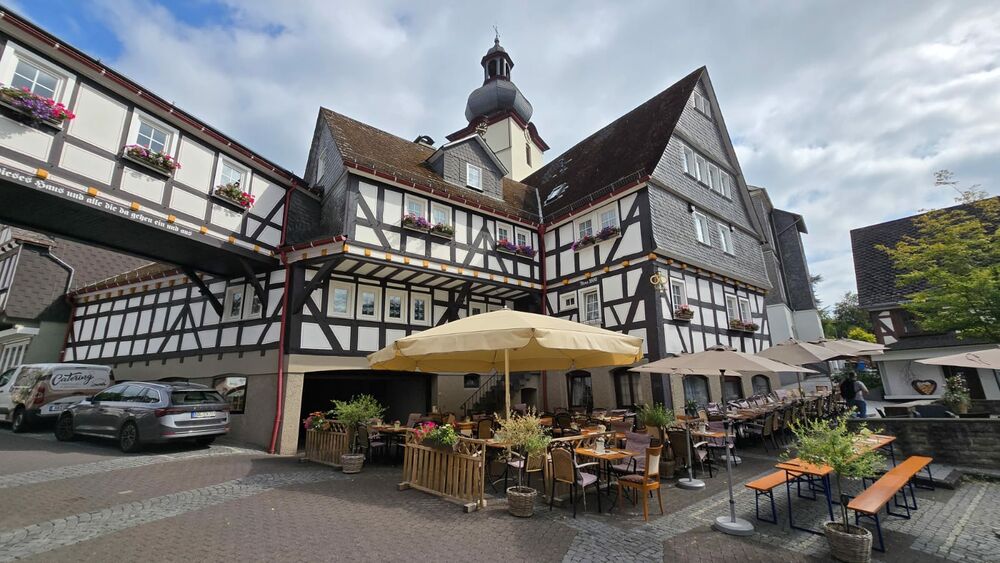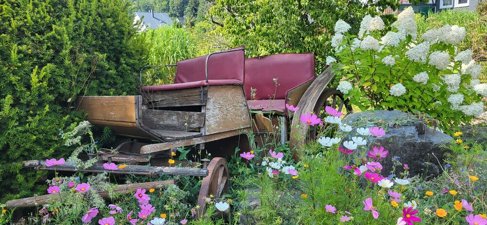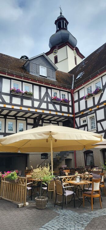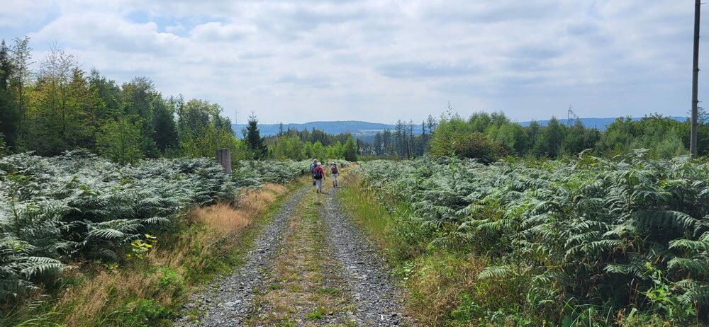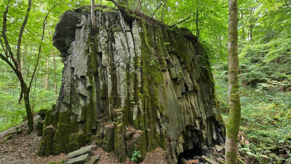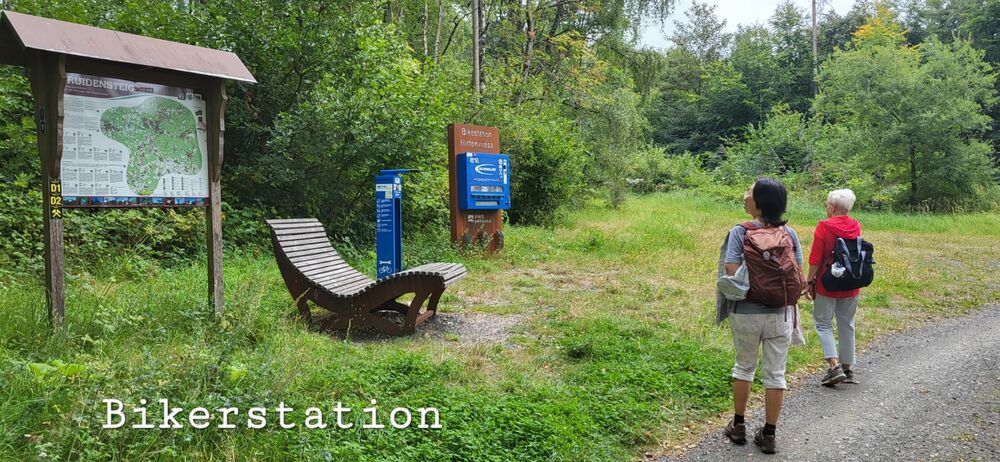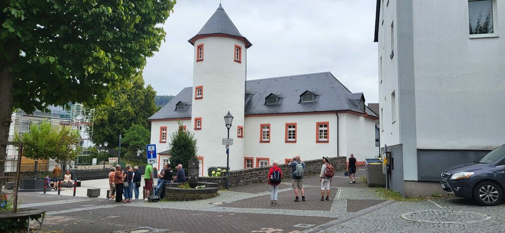 Gestärkt abwärts über den Grubenwanderweg an der uralten Hüllbuche vorbei nach Daaden mit Schlusseinkehr im Eiscafe Dolomiti. Bei gemütlichem Tempo hatten wir eine 16 km lange schöne Wanderstrecke auf dem Tacho!