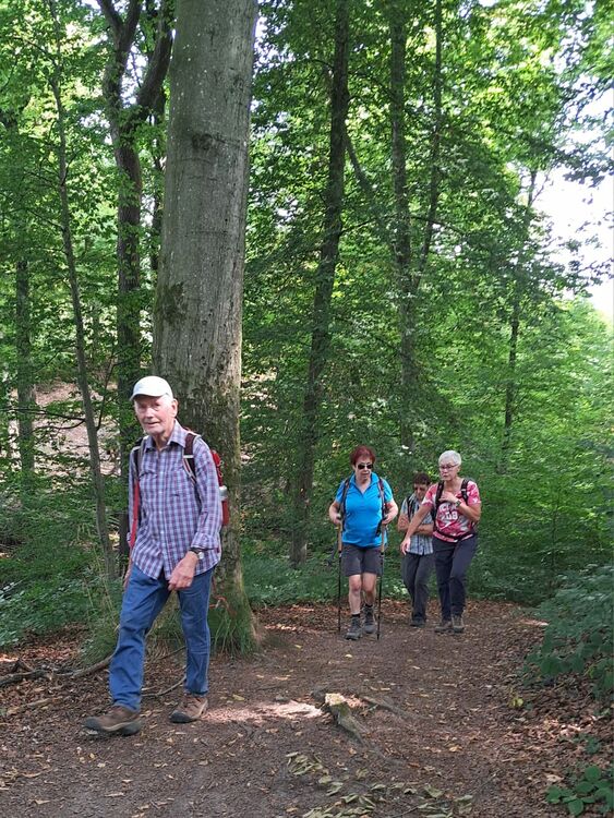 Ab Bahnhof Overath starteten wir 11 Wanderer, meist auf schattigen Wegen, entlang der Agger, auf dem Overather Pilgerweg hinauf nach Marialinden. Hier hatten wir die Hälfte unserer 11 km langen Strecke erreicht. Ein schöner Rastplatz unter Linden war ideal für eine längere Pause. Von dort ging es hinab ins Lombachtal bis zur Agger. Ein naturbelassener Pfad führte uns zu unserem Ausgangspunkt.