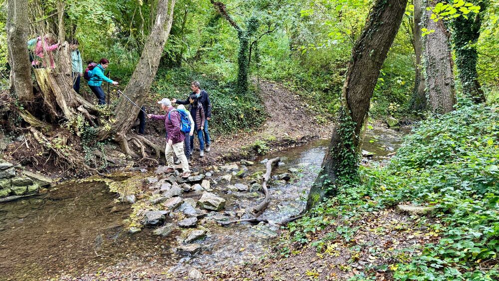 Erst ein Stück über den Eifelsteig entlang der Inde, bis wir dann nach kurzer Zeit an der ersten Bachquerung - ohne Brücke- über die Inde gehen, zum Glück hatte die Inde hier nicht so viel Wasser.