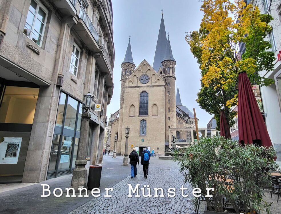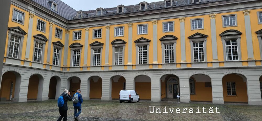 Die unsichere Wetterlage veranlasse uns Fünf, spontan das Waldgebiet auf dem Ennert nicht zu betreten. Also in Bonn raus aus dem Zug, durch die Innenstadt, Besuch des Bonner Münster, an der Uni vorbei zum Ausblick Alter Zoll.