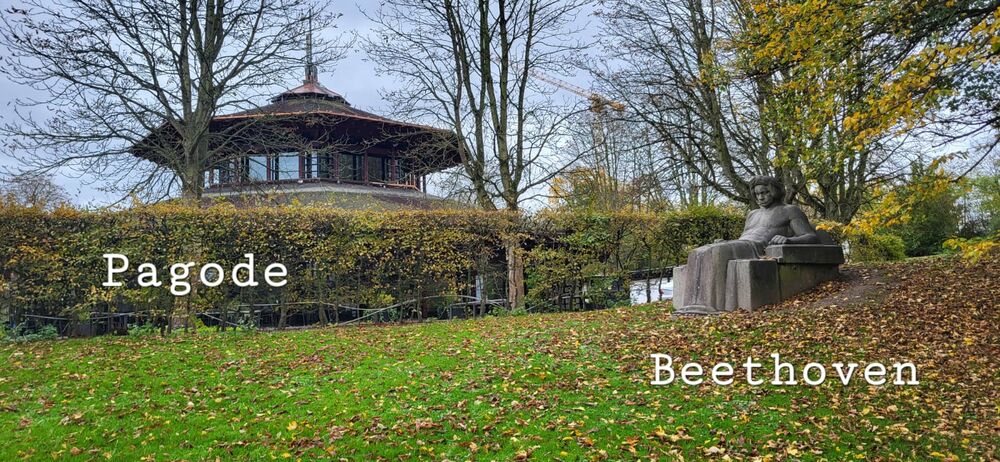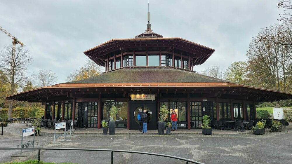 Rechtzeitig zur Einkehr in der Pagode angekommen, um die einsetzenden Regenschauer trocken am Kaminfeuer zu überbrücken. Weil wir noch genug Zeit hatten, mit der U66 nach Siegburg und zum Tagesabschluss in ein Eiscafe am Bahnhof.