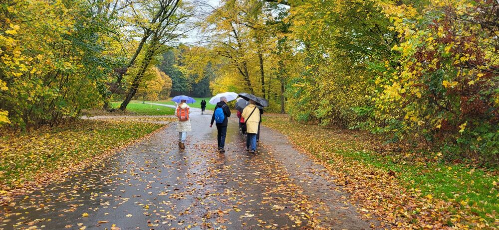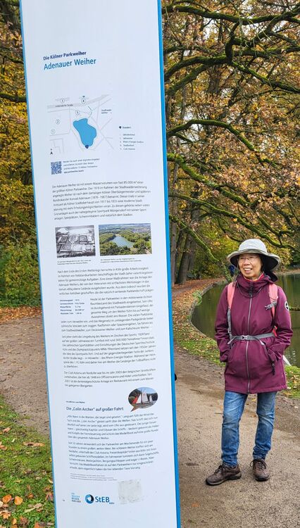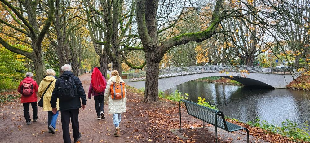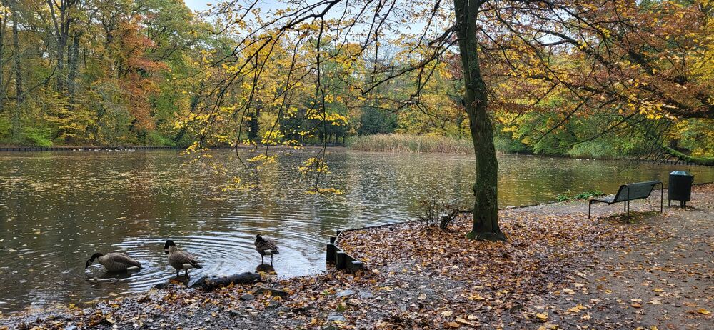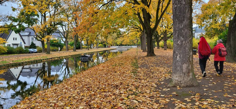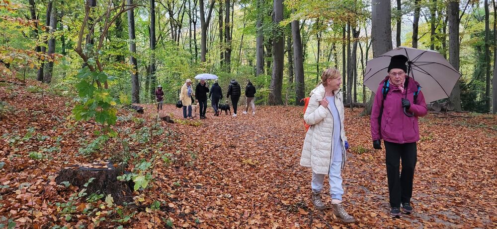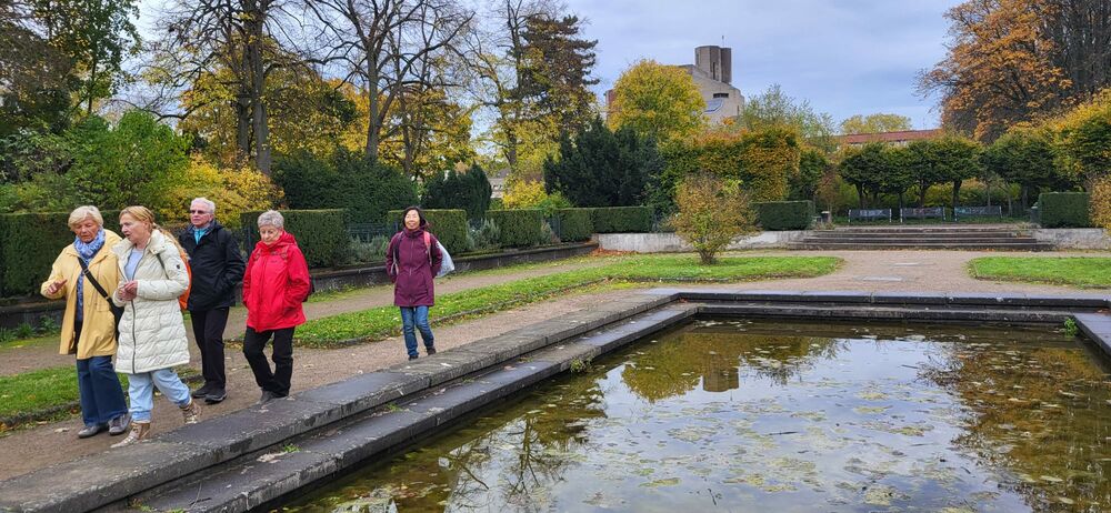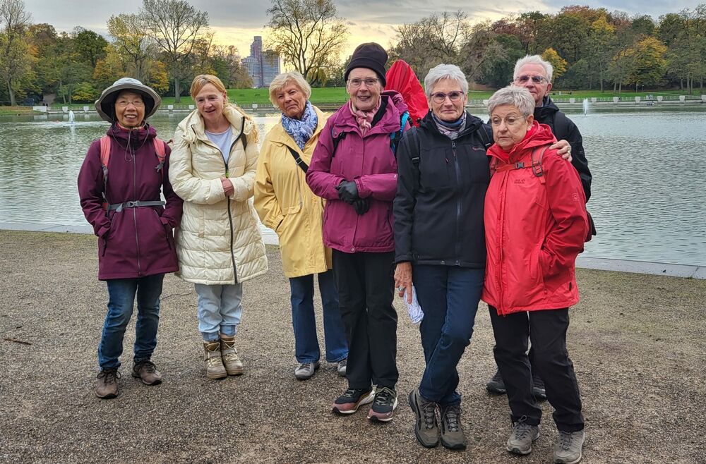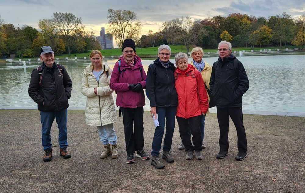 Typisches Novemberwetter erlebten wir Acht auf der Wanderung zu den Kölner Weihern. Los ging's am Aachener Weiher im Inneren Grüngürtel, den wir umrundeten. Hier lebhaftes Treiben der Wasservögel. Weiter am Clarenbachkanal zur leider verschlossenen Kirche Christi Auferstehung. Der Lindenthaler Kanal zeigte sich uns mit buntem Herbstlaub. Den Stadtwaldweiher streiften wir kurz und machten danach Pause im Tierpark. Nun setzte der angekündigte Regen ein. der am Adenauerweiher wieder aufhörte. In Müngersdorf Schlusseinkehr im empfehlenswerten Restaurant Landmann im St. Wendelin.
