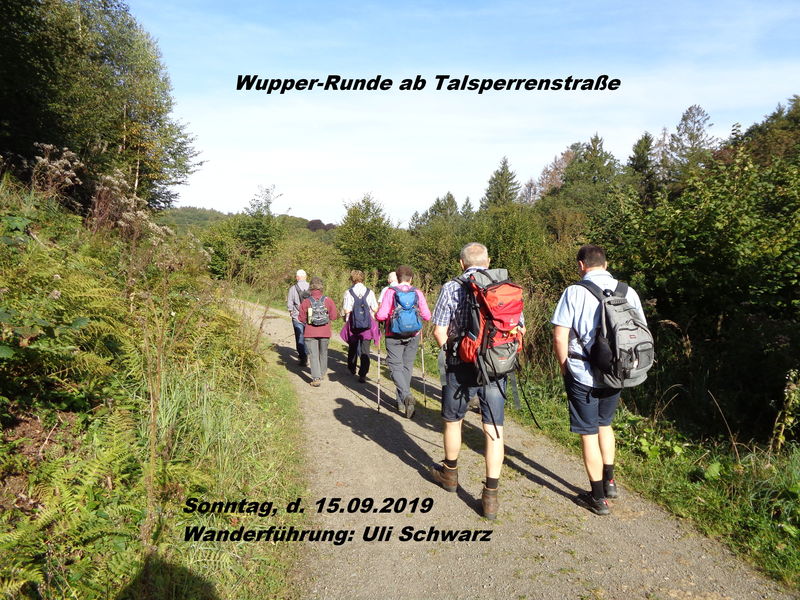 Bei herrlichen Wanderwetter starteten 12 Wanderer vom Parkplatz Talsperrenweg zur Sengbachtalsperre. Unter der Wanderführung von Uli Schwarz ging es dann über Glüder in das Tal der Wupper mit Mittagspause am Fluss. Wieder hinauf und über die Wupperbrücke nach Unterburg. Wahlweise mit derSeilbahn oder zu Fuß nach Oberburg und zum Parkplatz zurück. Schlusseinkehr: Schöne Aussicht in Oberburg